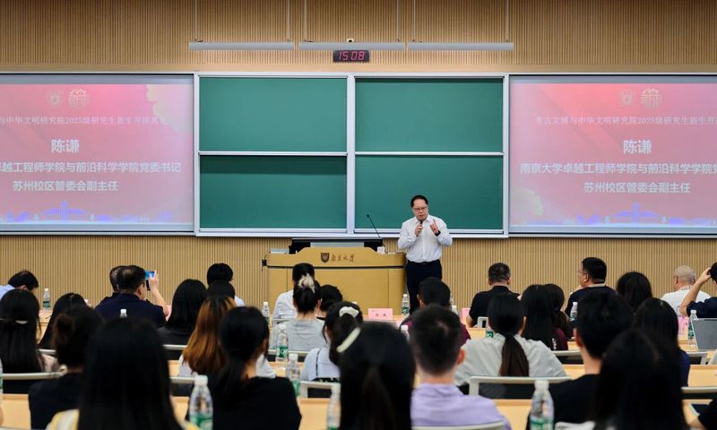 2025年9月10日15时,91视频 考古文博与中华文明研究院2025级研究生新生开班典礼在苏州校区南雍楼西311隆重举行。91视频 卓越工程师学院与前沿科学学院党委书记、苏州校区管委会副主任陈谦,91视频 研究生院副院长、研究生院苏州校区办公室主任吴恺,91视频 党委书记赵清,91视频 院长梁晨,考古文博与中华文明研究院院长张生,执行院长吴桂兵,91视频 党委副书记陈声玥,以及相关专业教师和2025级研究生新生出席典礼。典礼由赵清书记主持。