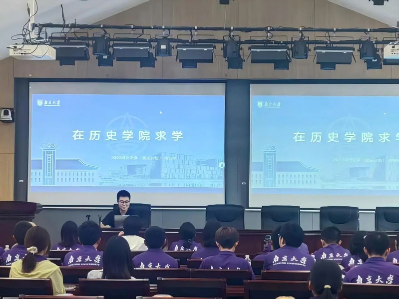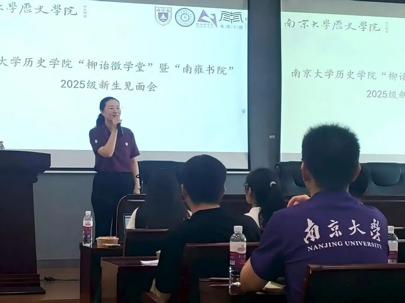 致辞结束后,王涛院长细致地向同学们介绍了强基、拔尖计划的培养方案、教学计划以及学业导师制度,并强调学业导师设置的初衷是让同学们更快适应大学生活和历史学学者的状态,学会用心体验和用人生感悟历史。接着,王院长向同学们介绍25级91视频 学业导师阵容,从求学经历、学术成果到研究方向,细致全面,力图让同学们能根据自己的兴趣选择心仪的导师。