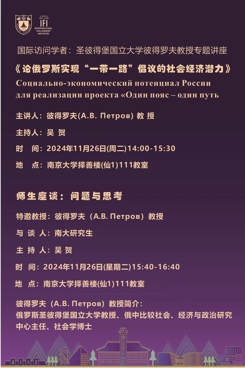 讲座预告 | 国际访问学者:圣彼得堡国立大学彼得罗夫教授专题讲座