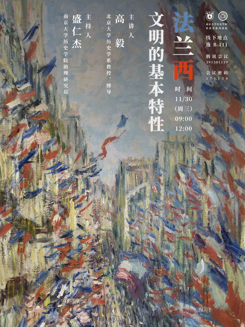 主讲人简介:高毅,北京大学历史系教授,博士生导师,国家教学名师,法国革命史国际委员会理事,中国世界近代史研究会会长,中国法国史研究会副会长。主要研究领域为法国史、欧美近代史、世界文明史、史学理论。曾为哈佛大学、日内瓦大学、列日大学及巴黎第一大学访问学者巴黎高等师范学院、巴黎第一大学客座教授。著有《法兰西风格:大革命的政治文化》,主编《“旧制度与大革命”解说》,译有《19-20世纪法国史学思潮》、《法国大革命史》《法国大革命前夕的图书世界》《捐官制度:十八世纪法国的卖官鬻爵》等。