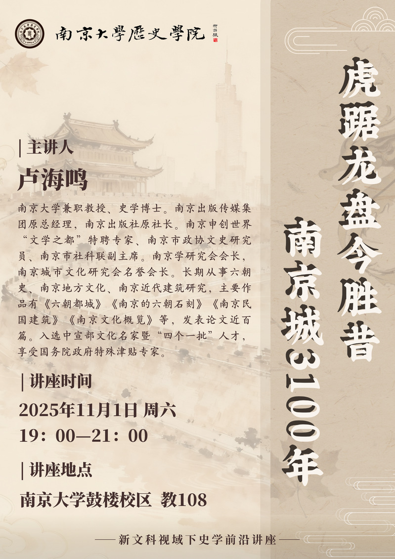 讲座预告 | 新文科视域下史学前沿讲座:虎踞龙盘今胜昔,南京城3100年