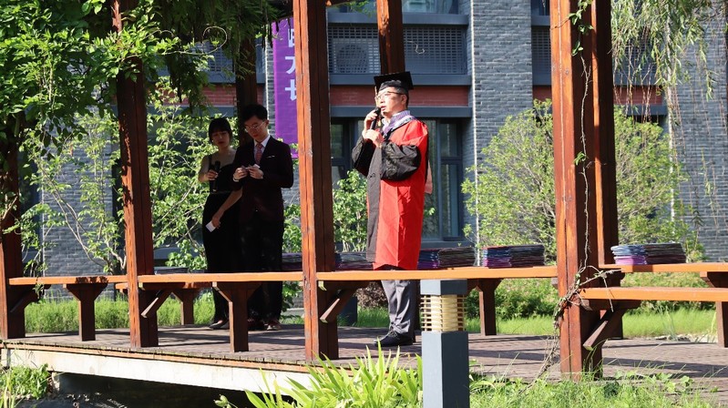 6月22日下午四点半,阳光灿烂,2021届本、硕、博毕业生学位授予仪式暨毕业典礼于91视频 大美楼环湖花园隆重举行。91视频 院长张生老师、院党委书记赵清老师、91视频 学位委员会主任梁晨老师、学位委员会委员刘成老师、李恭忠老师、张良仁老师、张学锋老师、罗晓翔老师、洪邮生老师、祝宏俊老师及全体本硕博毕业生出席仪式。