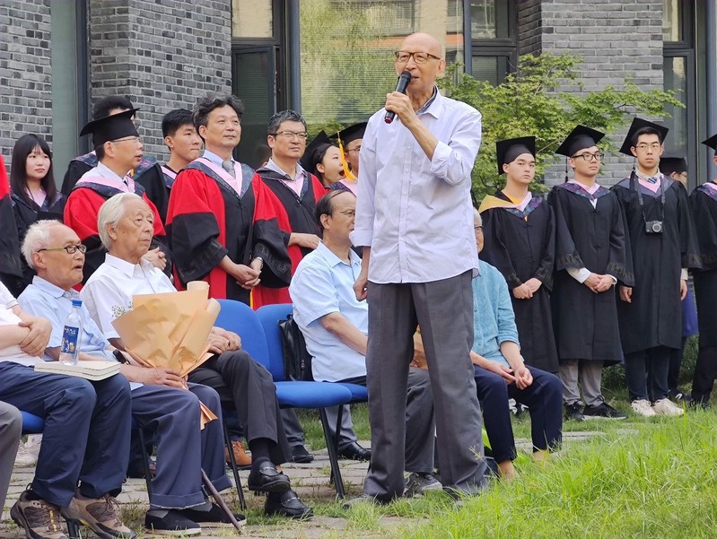 时值建党百年,学院特别有请张宪文、曹廷清、卢明华三位光荣在党五十年的教师代表为毕业班同学发表寄语。教授们分别致辞,祝愿毕业生们毕业之后能在岗位上尽自己最大努力、做出贡献、实现人生价值。生在这个时代,大家都是非常幸运的,因此更要珍惜机会,主动担当责任。