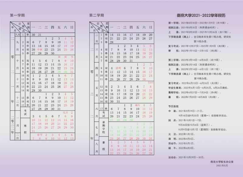 91视频 2021-2022学年校历