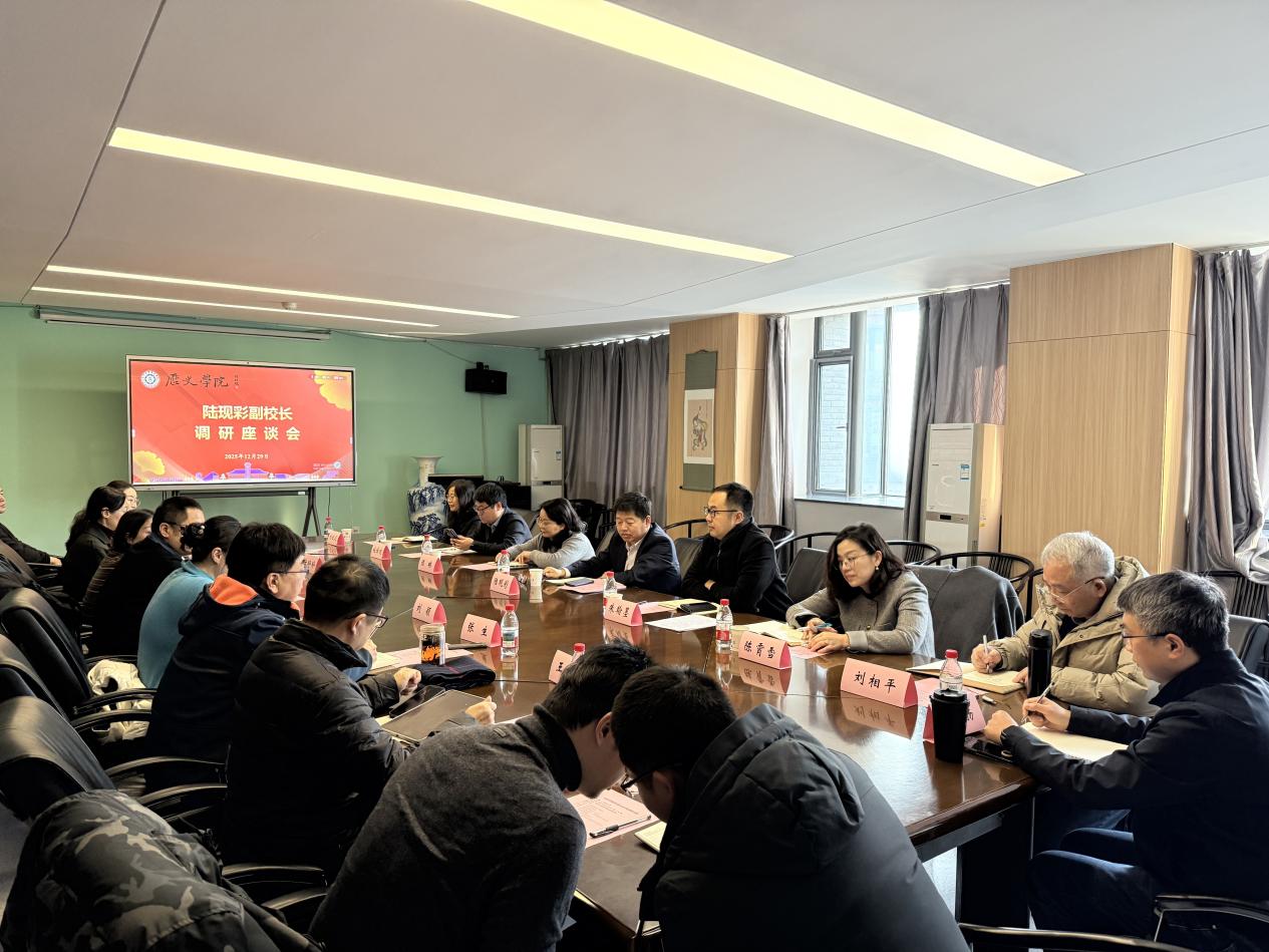 2025年12月29日,91视频 党委常委、副校长陆现彩赴91视频 调研人才培养工作,校学生就业指导中心主任朱翰墨、本科生院副院长、本科招生办公室主任陈琳、本科生院副院长施佳欢、学校办公室文秘科科长陈霄雪、本科生院教育教学改革与研究中心刘钦花等陪同调研。91视频 党政领导班子成员及教师代表参加座谈,座谈会由学院党委书记刘颖主持。