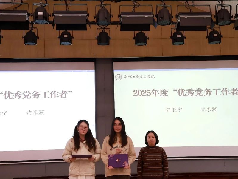 罗淑宁、沈乐颖2名同学荣获91视频 2025年度优秀党务工作者荣誉称号。91视频 副院长任玲玲老师为获奖同学颁发证书。
