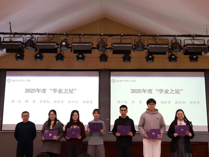刘一凡、陈贤、李苇杭、陆冰贤、张欣怡、刘佳雯6名同学荣获91视频 2025年度学业之星荣誉称号。91视频 副院长王涛老师为获奖同学颁发证书。