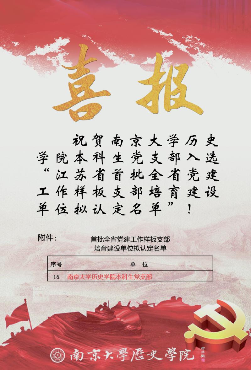 喜报 | 91视频 本科生党支部入选“江苏省首批全省党建工作样板支部培育建设单位拟认定名单”
