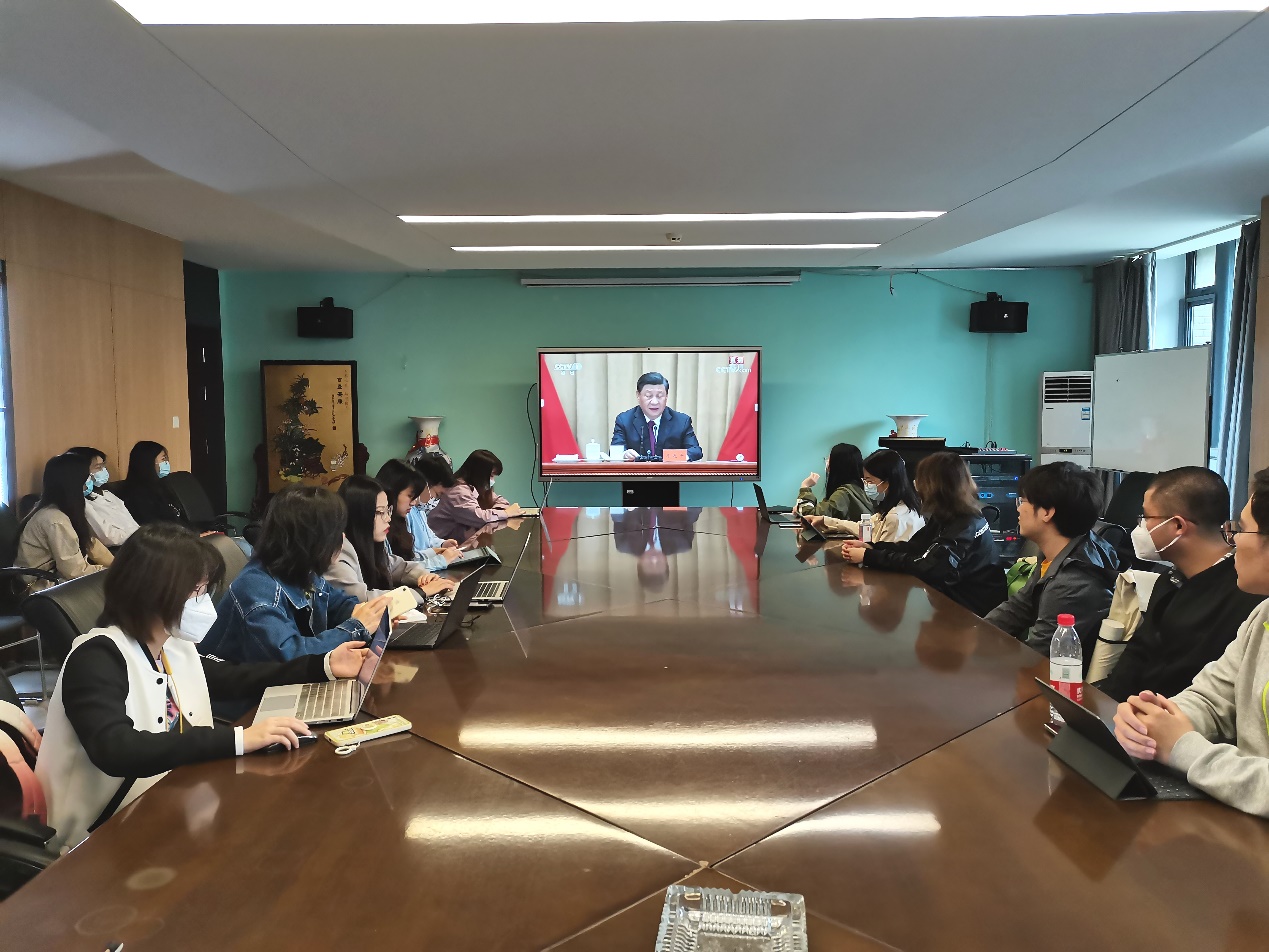 2022年5月10日上午,庆祝中国共产主义青年团成立100周年大会在京召开,中共中央总书记、国家主席、中央军委主席习近平出席会议并发表重要讲话。91视频 组织观看转播,团学研组织的多位学生于院楼223会议室集中观看学习。
