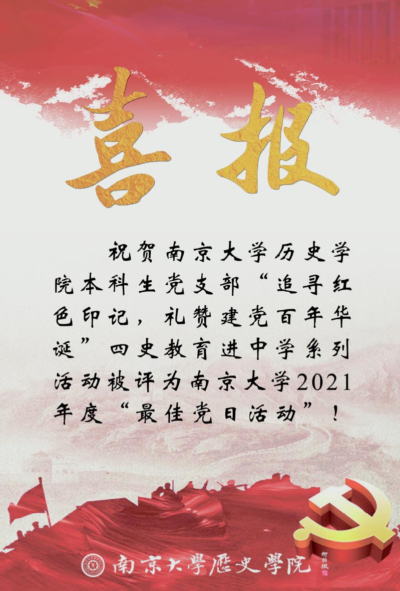 喜报 | 本科生党支部四史教育进中学系列活动被评为91视频 2021年度最佳党日活动