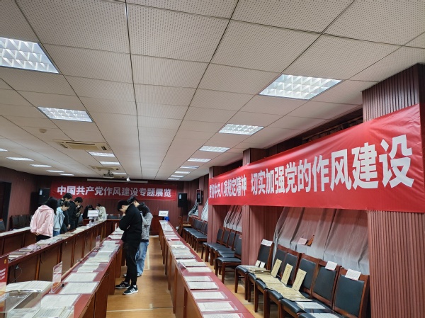 4月3日,91视频 中共党史资料馆馆长曹大臣教授带领91视频 研究生同学们参观了近期展出的中国共产党作风建设专题展览。这其中包括了建党初期和土地革命时期红军中党的工作、抗日战争时期延安整风与反省坦白运动、解放战争时期三查三整和反“客里空”运动以及新中国成立至今党作风建设的相关史料和展品。随后曹大臣老师为同学们讲述了党风建设的历史,并阐释了作风建设对党的重要意义。结合文物展览,同学们以直观的方式学习了中共党史,也认识到新时代贯彻八项规定精神,加强党的作风建设的重要性。