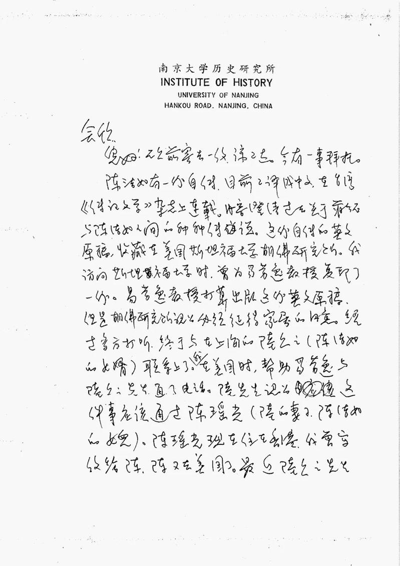 两位老师嘱托的事作为学生自然是义不容辞,我随即就按照陆久之先生提供的地址,于7月23日给陈瑶光女士写了一封信。信中首先自我介绍一番,并说自台湾《传记文学》刊载您母亲的回忆录之后,引起学界极大的重视,而这份回忆录的英文原稿现存于美国斯坦福大学胡佛研究所,美国伊利诺伊大学的易劳逸教授为了让世界上更多的人了解这段历史,计划将其英文原稿在美国出版,但这需要得到家属的同意。他说曾多次去信给您,但一直没有回音,现通过我的老师张宪文教授委托我尽快与您联系。我将我的联络地址和电话都写在信上。我在信中还介绍,易劳逸教授是美国第一流的民国史学者,为人正直,学问渊博,不仅在美国,就是在中国大陆和台湾都享有盛誉,91视频 历史系主任张宪文教授是易教授的好友,也是国内著名的民国史专家。同时易劳逸教授还再三强调,该书出版后的所有稿酬将全数交给家属,他不会收取任何报酬。