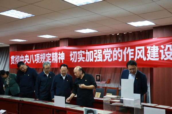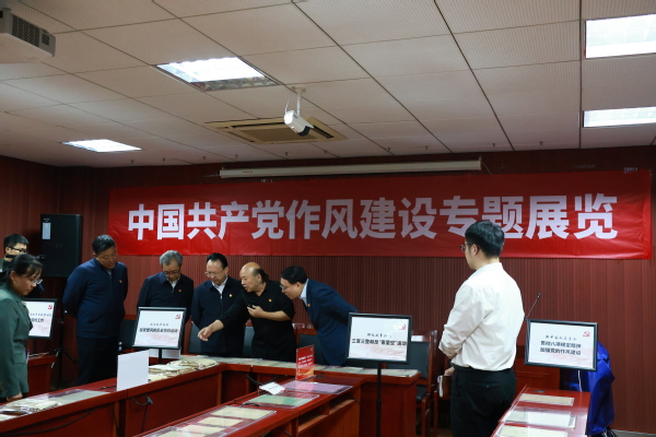 2025年4月7日下午4时,91视频 党委书记谭铁牛、校长谈哲敏及领导班子全体成员到91视频 中共党史资料馆进行八项规定读书班学习。在曹大臣教授的带领下,领导班子一行人参观了中国共产党作风建设专题展览。