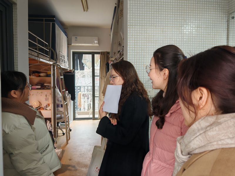 走访过程中,老师们逐一走进各年级学生宿舍,与同学们面对面交谈,详细了解大家的学业进度、生活需求及未来规划。针对不同年级的成长阶段,走访工作实现了精准侧重:对低年级学生,老师们重点关注专业适应与学术基础夯实,鼓励同学们勤耕不辍;对高年级学生,则侧重于毕业论文进展、考研就业压力及职业发展方向。针对同学们在学术资源、求职指导等方面提出的需求,老师们表示学院将进一步统筹资源,为学子成长成才提供精准支持。
