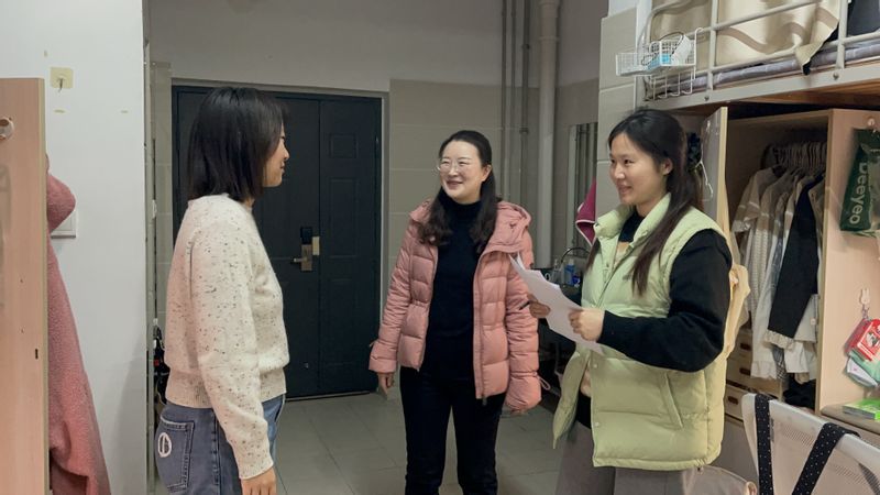 律回大地,万象更新。为深入了解新学期学生返校后的思想动态与生活状况,营造温馨和谐的育人环境,3月4日至10日,91视频 党委副书记陈声玥,辅导员杨骏、田捷、陈惠娟,兼职辅导员姚全、殷洁老师,教师代表于磊老师深入诚园、雅园、静园、勇园四处学生公寓,走访了大约三百间学生宿舍,为91视频 学子们送去新学期的关怀。