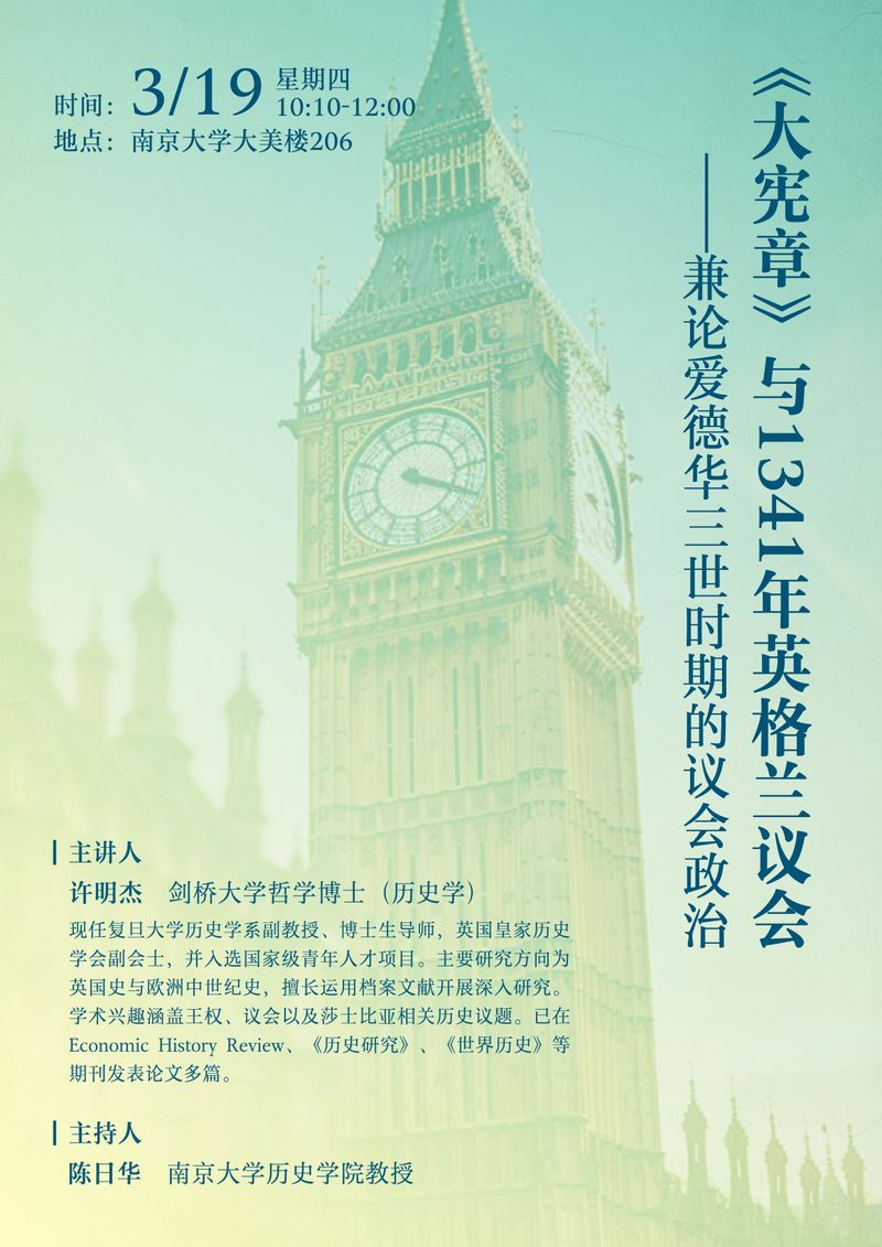 讲座预告 | 《大宪章》与1341年英格兰议会——兼论爱德华三世时期的议会政治