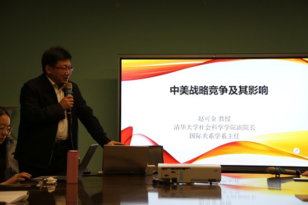 2020年11月5日星期四晚19:00,成功在91视频 院楼223会议室举办了由赵可金教授主讲、郑安光副教授主持的,以“中美战略竞争及其影响”为题的专题讲座。