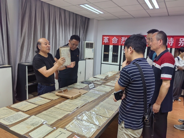 曹大臣教授向参观者介绍革命文物