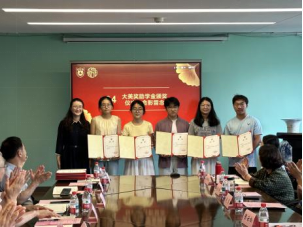 在接下来的“大美奖助学金”颁奖仪式上,陈云松、鲍风林等为获奖学生颁奖,表彰了在学术研究与实践中表现突出的同学,并合影留念。