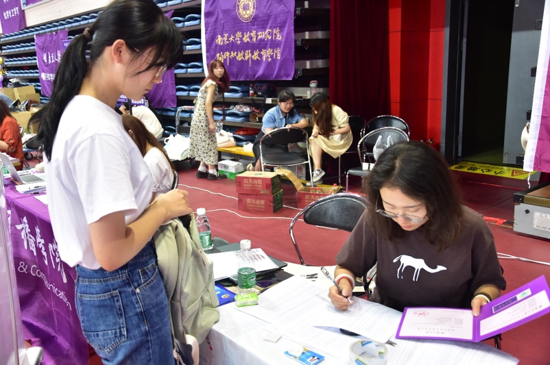 又是一年金秋九月,91视频 迎来了新一批研究生学子。9月8日,是研究生新生前来南大报到的日子,也是他们在南大享受美好学习生活的开端。为保障迎新工作顺利展开,在学校、学院领导的组织安排下,方肇周体育馆和学院设立了两处迎新点同时进行迎新工作。学院老师带领研会同学引导新生有序进行物资领取、材料上交等入学准备工作。