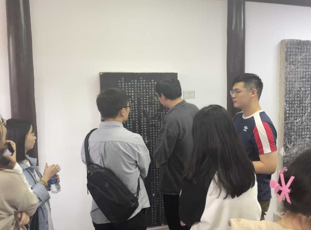 师生在碑林中走走停停,来到元《镇江路儒学复田记》碑前。目前陈列的石碑仅是一块仿制品,甚至有许多误抄的部分,原碑上的八思巴文也被草草刻画几笔完事。师生观察碑侧,发现复制品的表面与碑体有明显的分层。惋惜后,于老师向我们解读,镇江路儒学复田记碑记载了元代镇江路学田被豪民侵占两千多亩,最终在官方主持下得以追回一事。值得注意的是,霸占学田的邱永崇、邱德仁父子得以作威作福,主要仰赖镇南王乳母家的“苍头”岁哥。仅勾结镇南王乳母家的仆人便能在地方有如此威势,元代江南地区“权豪勢要”的影响力可见一斑。然后大家又仔细阅读了元代《焦山禅寺重建圆悟接待庵记》,辨识出碑文上大德年间的相关记载。