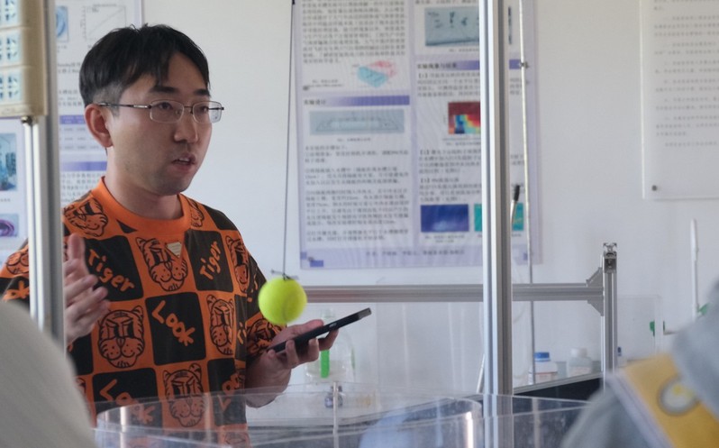 丁达尔效应湍流涡旋演示 大气学院实验室学生负责人讲解