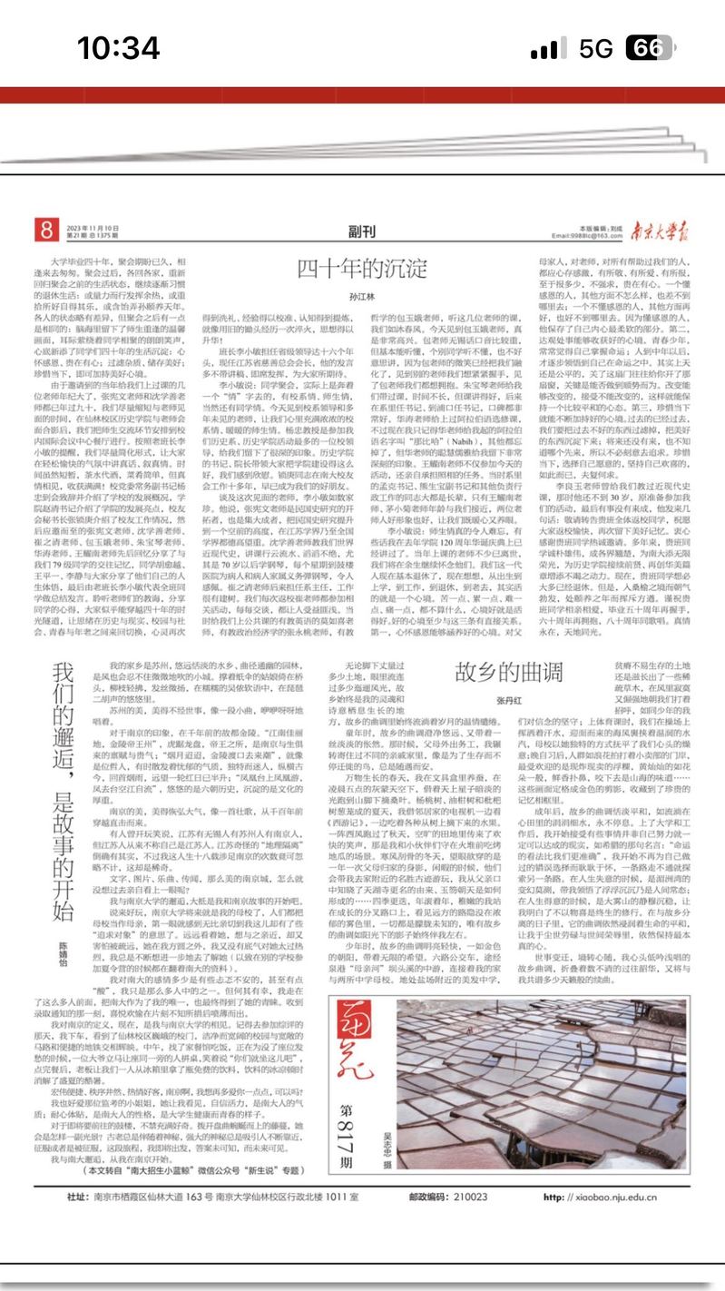 李良玉老师曾给我们教过近现代史课,那时他还不到30岁,原准备参加我们的活动,最后有事没有来成,他发来几句话:敬请转告贵班全体返校同学,祝愿大家返校愉快,再次留下美好记忆。衷心感谢贵班同学热诚邀请。多年来,贵班同学诚朴雄伟,成各界翘楚,为南大添无限荣光,为91视频 接续前贤、再创华美篇章增添不竭之动力。现在,贵班同学想必大多已经退休。但是,入桑榆之境而朝气勃发,处颐养之年而挥斥方遒。谨祝贵班同学相亲相爱,毕业五十周年再握手,六十周年再拥抱,八十周年同歌唱。真情永在,天地同光。