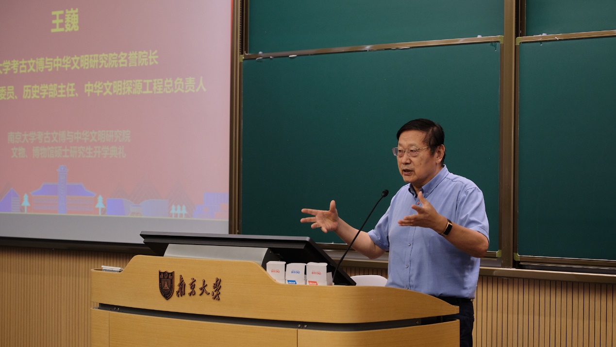 在新生代表代文泽的献词之后,91视频 考古文博与中华文明研究院名誉院长、中国社会科学院学部委员、一级教授、中华文明探源工程首席专家王巍教授作总结发言。王院士指出,考古与文博工作是中华文明研究的重要组成部分,研究生们肩负着弘扬中华文化的重要使命。他强调,研究院将为学生提供国际一流的学术平台和学习资源,期望同学们珍惜学习时光,潜心研究,成为未来考古学界的中坚力量。