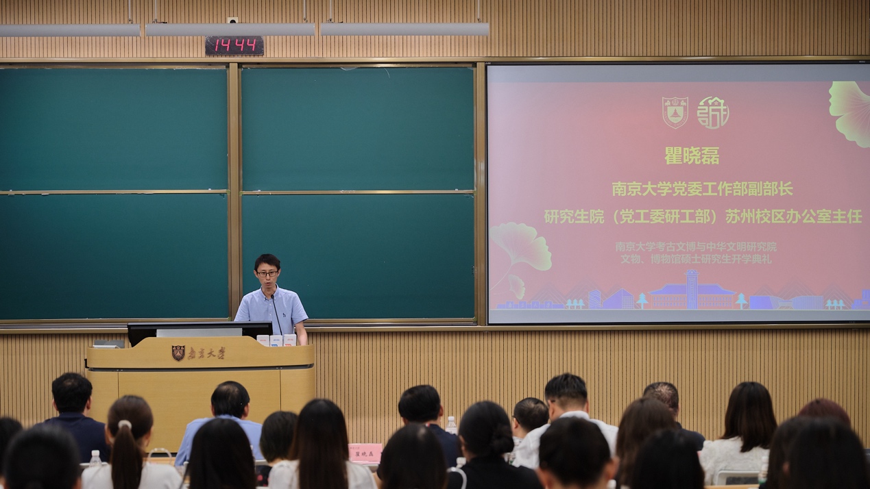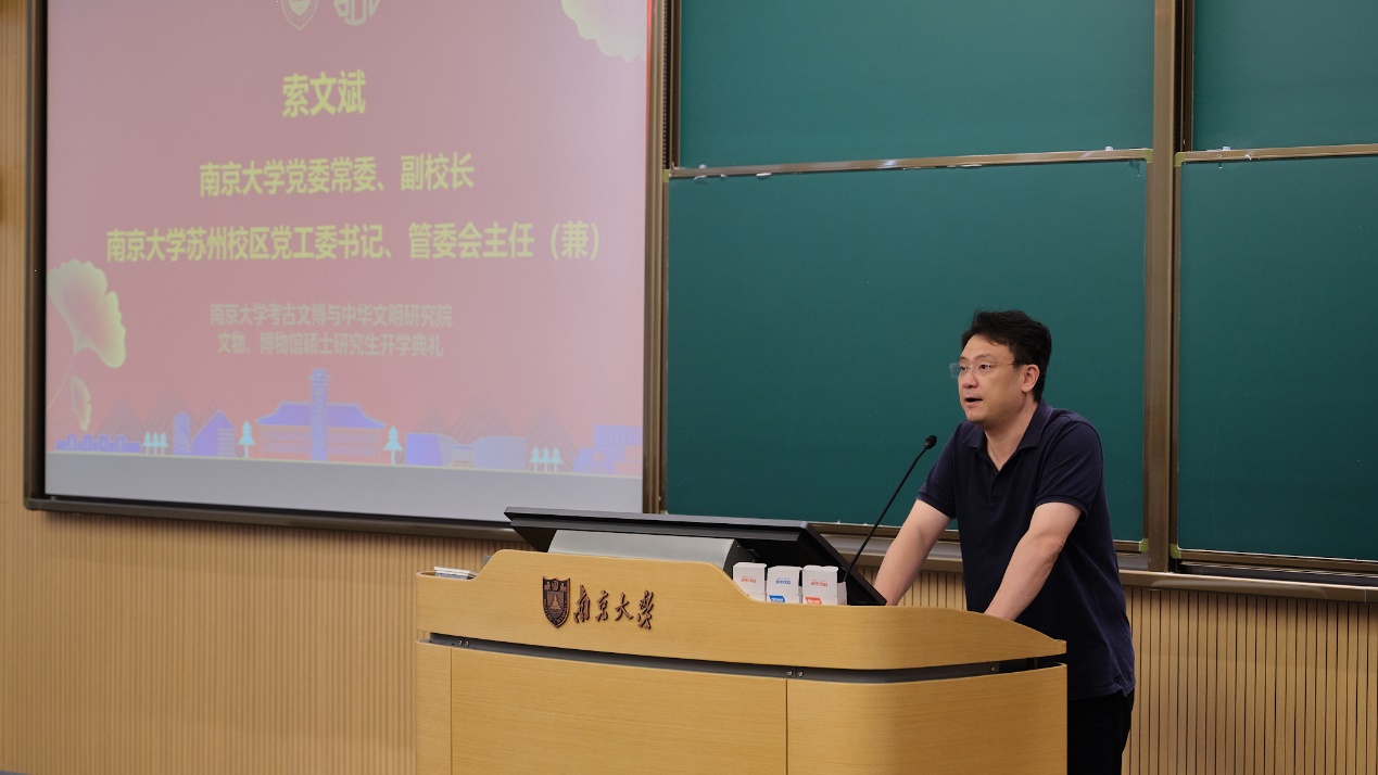 2024年9月8日下午2:30,91视频 考古文博与中华文明研究院首届硕士研究生开学典礼在苏州校区南雍楼西311正式拉开帷幕,标志着研究院硕士研究生教育的正式启动。91视频 党委常委、副校长索文斌,91视频 考古文博与中华文明研究院名誉院长、中国社会科学院学部委员王巍,研究生工作部副部长瞿晓磊,91视频 院长、考古文博与中华文明研究院院长张生,91视频 党委副书记任玲玲,91视频 副院长王涛,91视频 考古文物系主任、考古文博与中华文明研究院执行院长吴桂兵等领导、教师代表及全体新生出席活动,典礼由91视频 党委书记赵清主持。