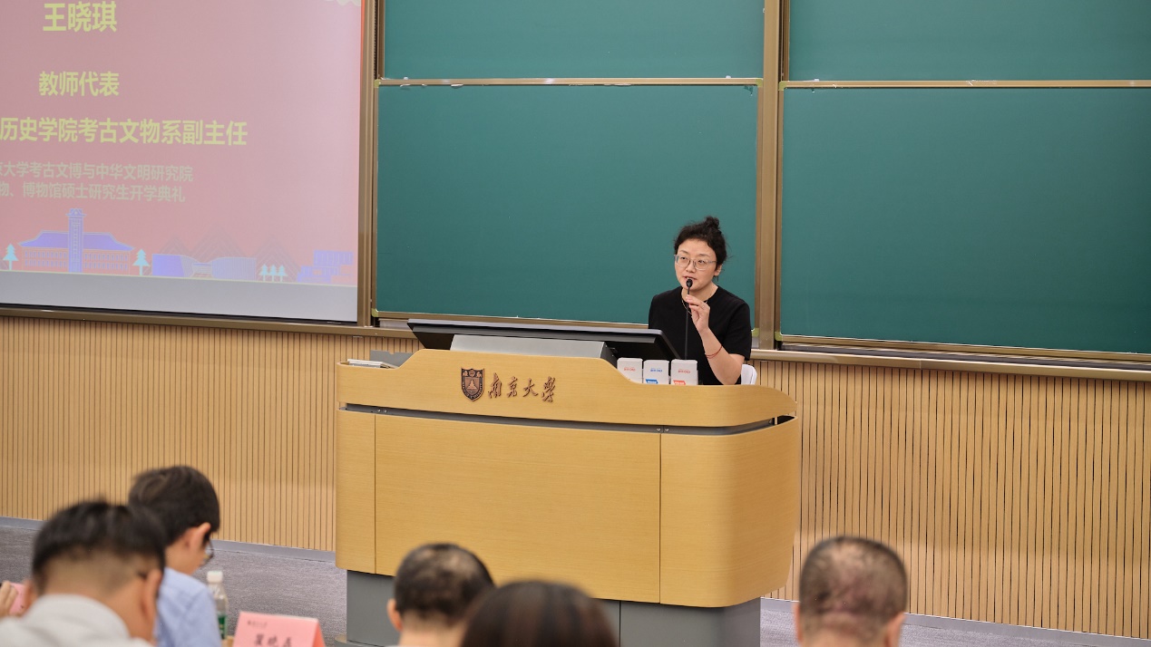 随后,91视频 考古文物系副主任王晓琪副教授以《考古文博与科技人文之美》为题,分享了自己对考古学与文博工作的理解与感悟。她鼓励新生们结合科技与人文,挖掘中华文明的历史底蕴,为未来考古学的创新与发展贡献力量。