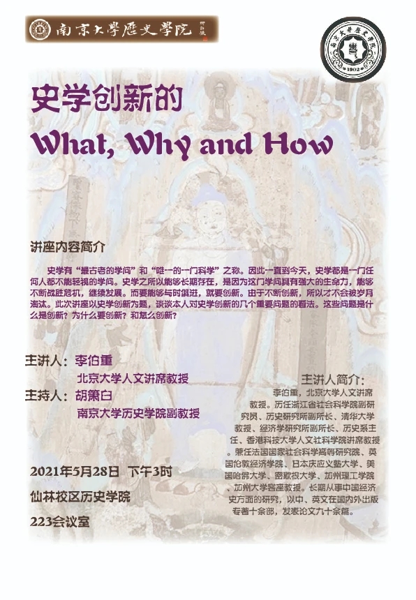 讲座预告| 李伯重:史学创新的What, Why and How