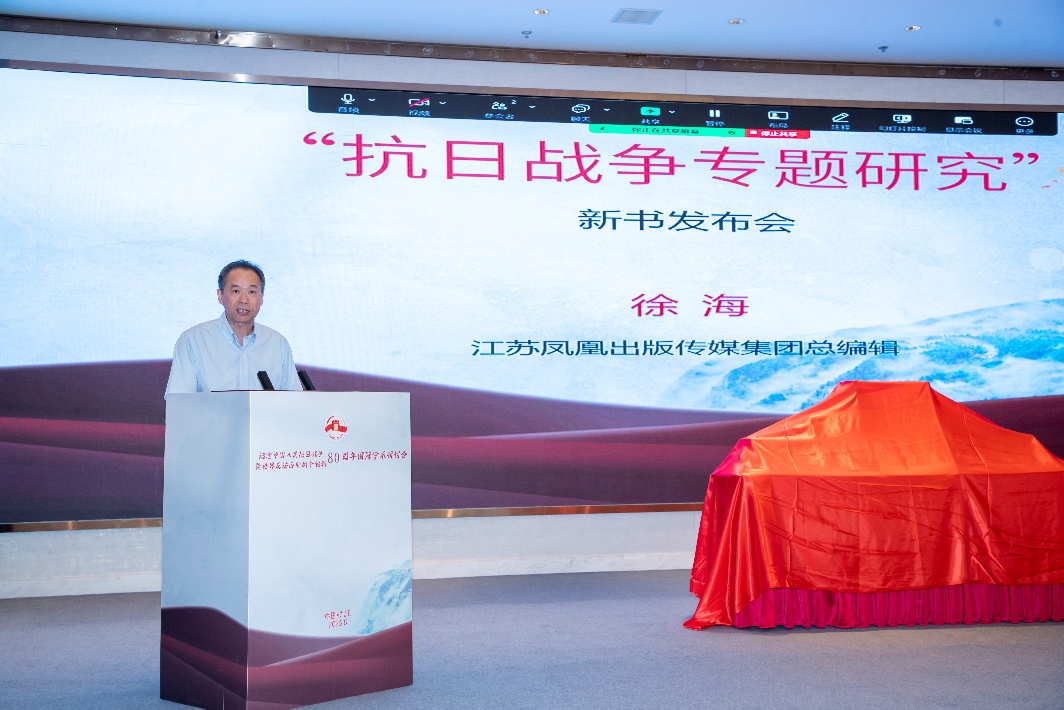 开幕式后举行了“抗日战争专题研究”新书发布会,由91视频 社会科学处处长高方主持,“抗日战争专题研究”主编朱庆葆、江苏凤凰出版传媒股份有限公司总编辑徐海为新书揭幕。