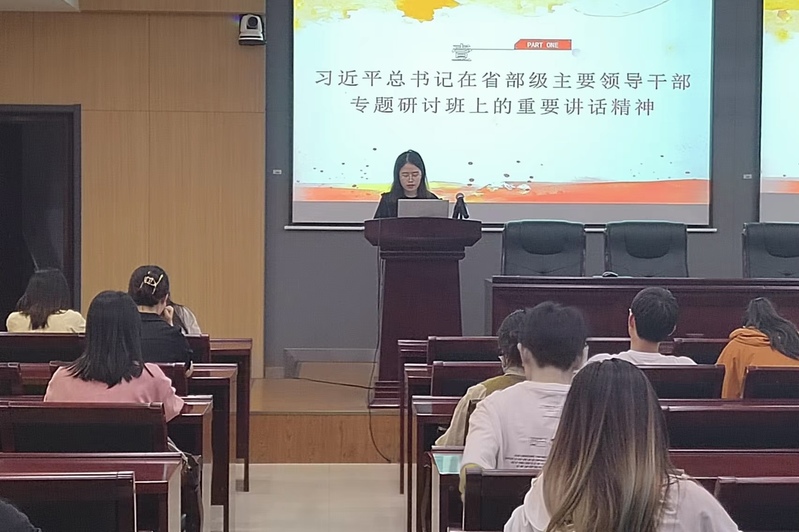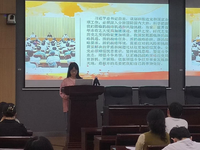 会议主要分为三部分内容,一是学习习近平总书记在省部级干部专题研讨会上的重要讲话以及中共91视频 第十五届委员会第十次全体(扩大)会议精神;二是热烈欢迎新加入支部的22级新生党员同志,新生党员自我介绍;三是支部同志结合自身实际情况积极发表学习心得和感想。会议还通知了换届选举的相关事宜。